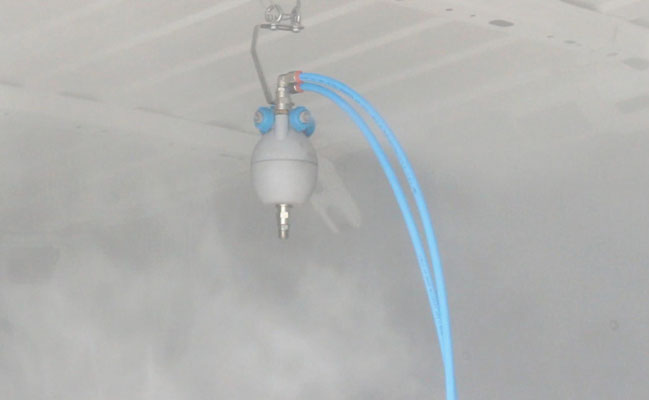 La disinfezione viene effettuata tramite un atomizzatore a quattro ugellli di aria/acqua ad alta pressione che nebulizza la soluzione a 360° creando delle goccioline di acqua estremamente fini che raggiungono tutte le superfici. In pochissimo tempo copre ca 20 mq, sanificando l’ambiente. Può essere utilizzato sia sulle superfici che su oggetti e attrezzature.