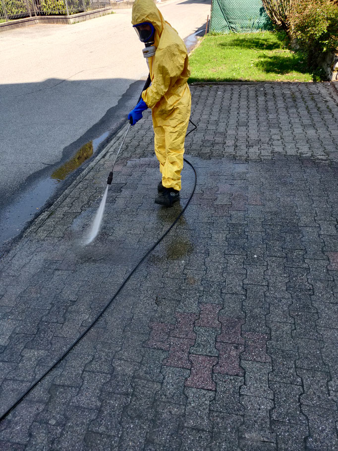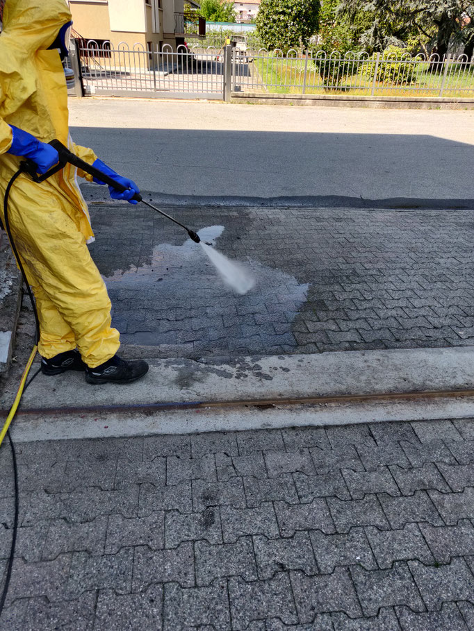Per i luoghi pubblici esterni la Masstech Italia S.r.l. utilizza acqua ad alta temperatura o con l'utilizzo di prodotti chimici ECOLOGICI ed ECOCOMPATIBILI.