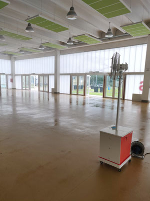 Dopo l'applicazione il pavimento del locale viene ulteriormente sanificato con prodotti a base di Alcool.